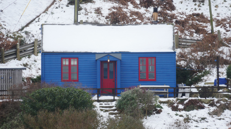 In the recent storms from the east, the harbour has experienced more snow than it’s had for a long time.  The Cabin’s renewed electric heating has been keeping it warm and safe for when guests can return.